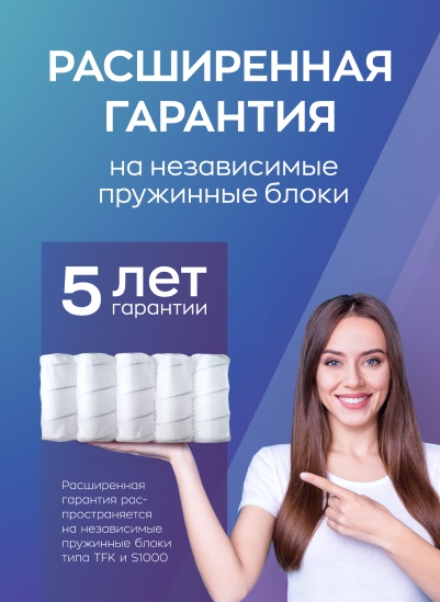 Информируем Вам о том, что на все пружинные блоки независимой конструкции, выпускаемые фабрикой, будет действовать расширенная гарантия 5 лет.